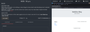 The webpage uses the same solution as before, i.e. it retrieves the content of the webpage from the file. However, when I tried the previous task of moving from one ../ folder to another, a "security" was created for that page which disables that command.