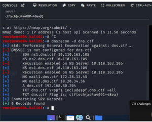 I performed DNS enumeration as requested: dnsrecon -d dns.ctf